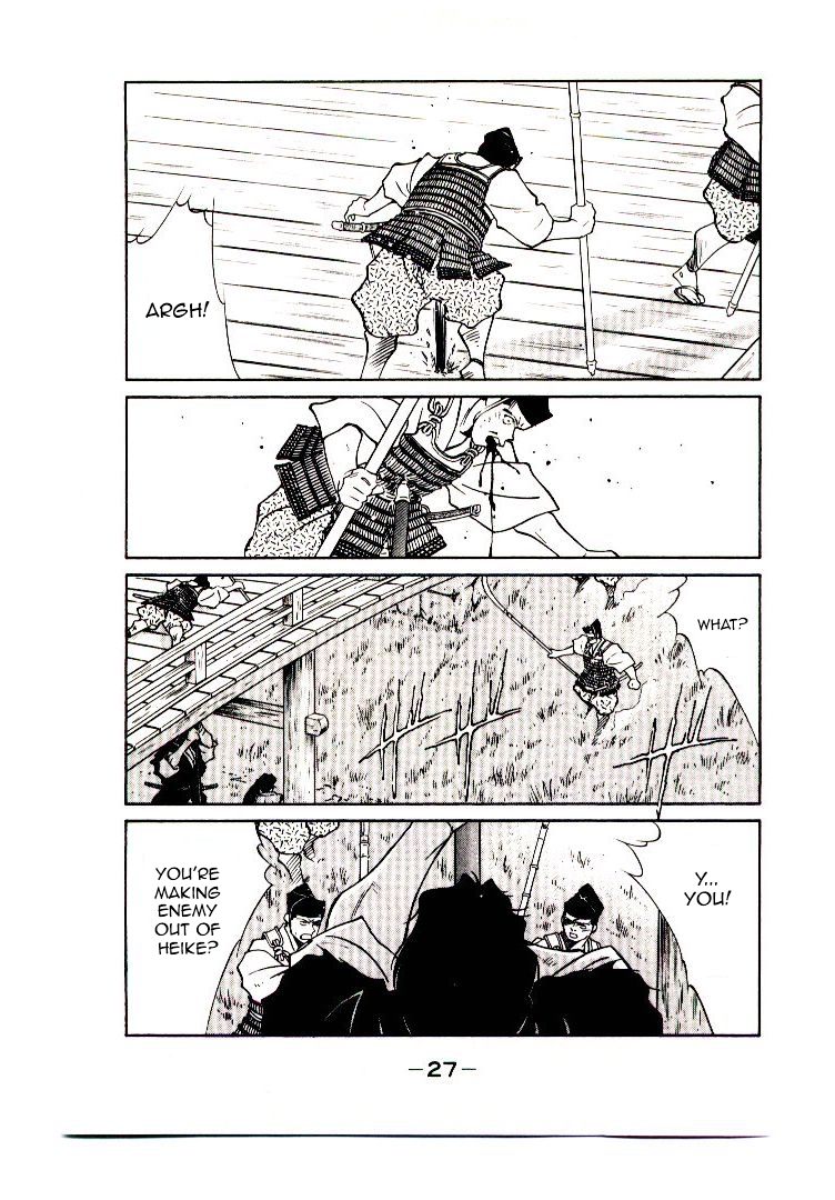 This chapter has a few separated spreadpages that I just can't figured out how to join. Especially that chapter cover page showcasing Benkei and Kiichi. All I could do is just give it a little cleaning. If Someone want to join them, go ahead! Also, somehow I keep mistaking the names in this arc (for example: Yoritomo for Yorimoto). So I apologize in advance!